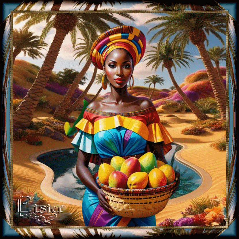 Bonjour ma douce Lisia tu as passé un bon week-end ? le temps est beau ce matin belle ta création, jolie dame africaine et beau decor belle journée ma douce gros bisous Elyci